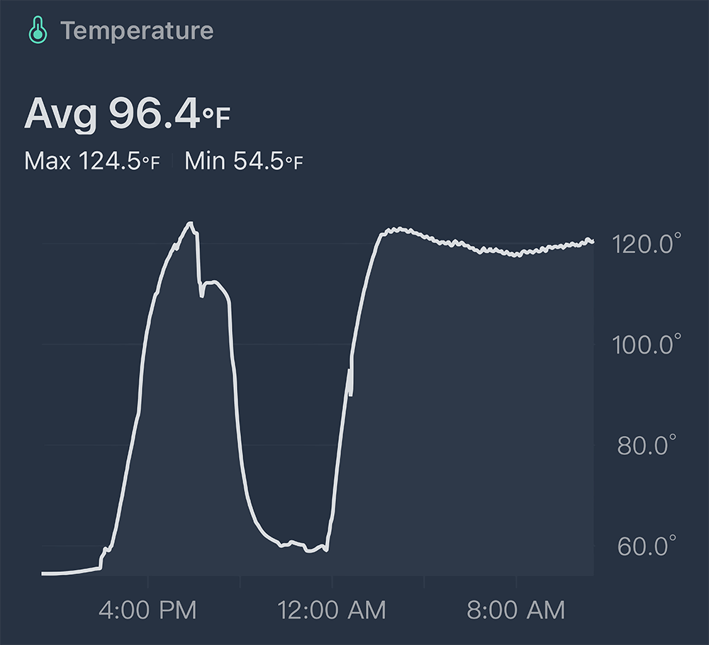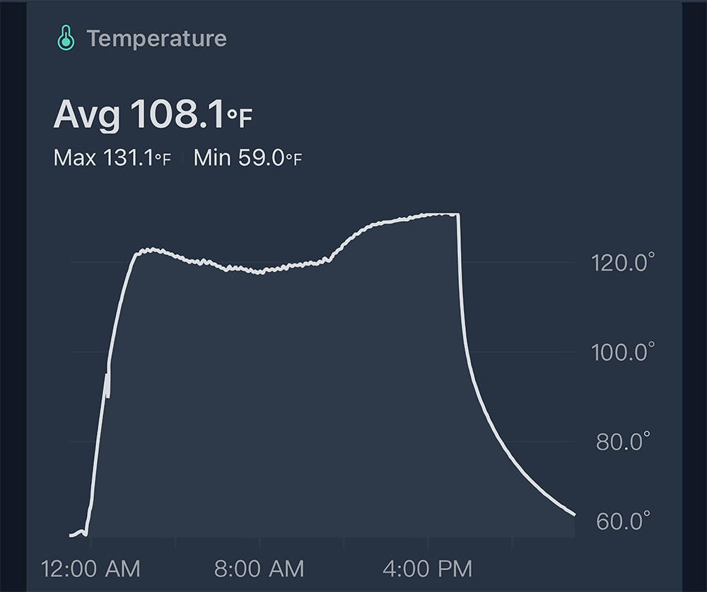 In the initial 60 minutes, the 43° bag surpasses 100º F, hitting its max at 124.5°F in under 2 hours. For your preferred pregame warmth, switch it on 1-2 hours before leaving the rink.